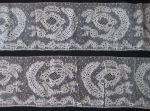 http://tinyurl.com/28n7pyk Beveran lace border, 4 3/4″ ( 12CM) WIDE AND 96″ ( 244CM ). $165, no current bids. The piece looks in excellent condition, seller notes a seam 9″ from one end. Quite rare to see something like this on the market.