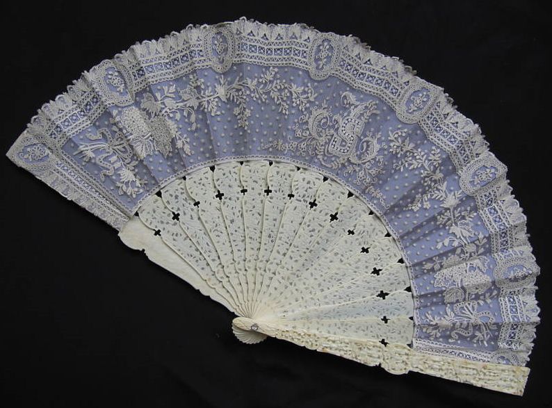 http://tinyurl.com/28c5rck Brussels Bobbin Lace fan, Cantonese Hand Carved sticks