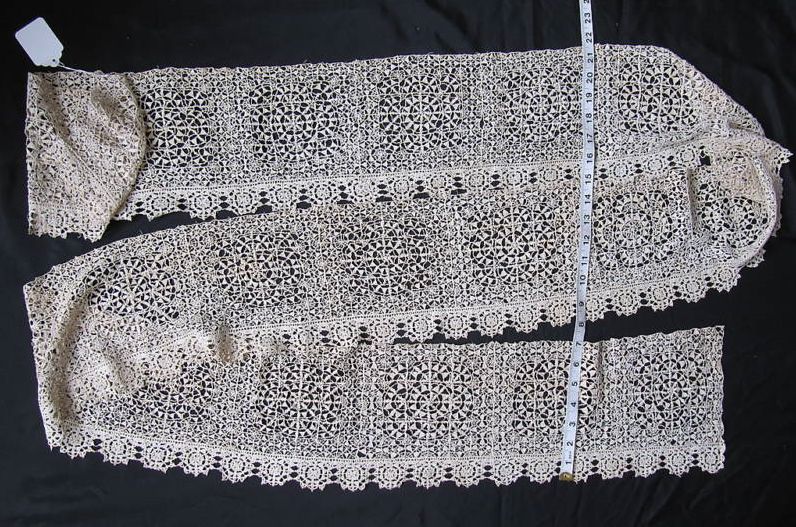 Comments: Looks like an excellent piece of good length and width. The Genoa-like bobbin border is a good match for the Reticella cutwork.
