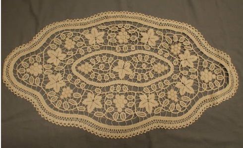 Comments: This piece is being sold on Italian Ebay – I have no idea what CEST means on the ending time. The piece is definitely not bobbinlace as stated. It caught my notice because it looks like the ‘Romanian Point’ that seems to have caught on so well with needlelace makers in the US. But seems to be mainly crochet – anyway, I thought it was interesting.