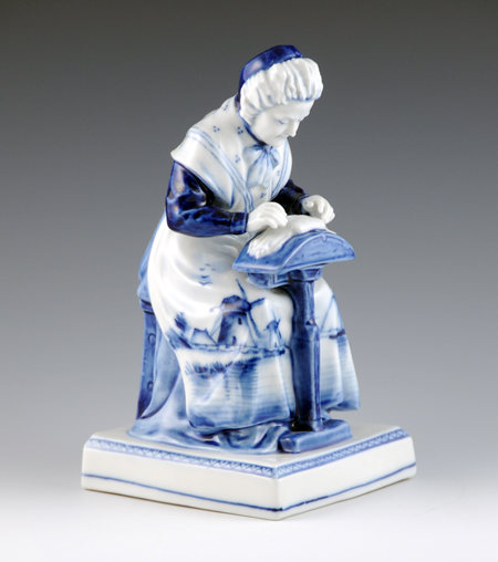 Continuing with lacemaking figures from different countries, I very much like the Delft porcelain figures from the Netherlands. This will be a short post because I’ve only been able to find four of these figures, and not much solid information about any of them.