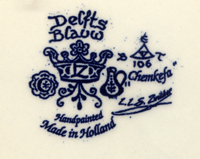 This is not the place to go into the history of Delft earthenware; the Wikipedia article on Delftware is as good a place as any if you are interested. Originally Delftware was a tin-glazed earthenware, the clay mixed from three different sources. By the time these pieces were made, their form is an underglaze blue on a white clay body.