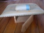 Comments: Normandy pillow in what looks like good original condition. These were usually covered with another cloth by the lacemaker – the lack of a cover is a bit unusual. It’s a pretty standard style, and I have seen ones like this marked by the Lefebure manufactory. This one is stamped with what I assume is the maker’s name on the bottom, but I can’t read it from the photo. Normandy pillows in this condition rarely come up for sale.
