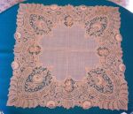 Comments: Haven’t seen this seller before. A very nice handkerchief of Belgian needlelace – the raised petal roses are handled very well for a piece like this. Fillings are interesting. A nicely done piece.