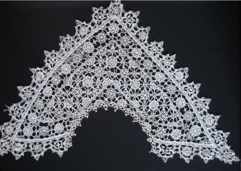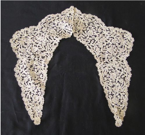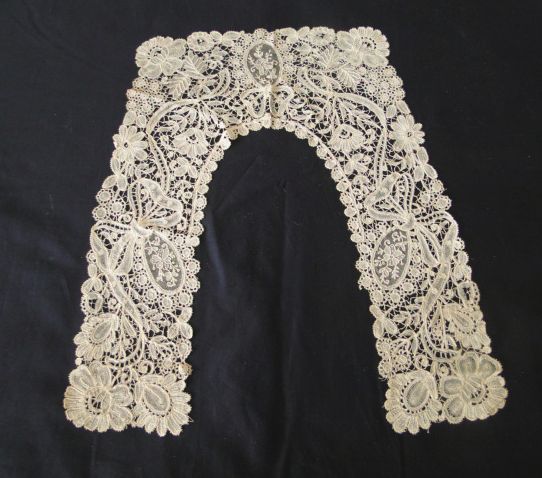 Comments: Good collar of Duchesse with needlelace inserts. Nice design of ribbons and bows – almost doesn’t need the needlelace. Looks in good condition.