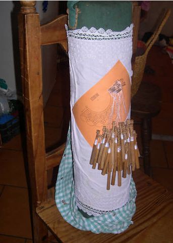 http://tinyurl.com/4jqnvmj Ancien Carreau de dentellière + 46 fuseaux + modéle