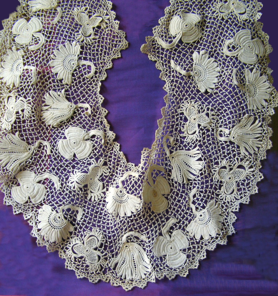 Comments: Very nice Irish Crochet collar, 4 motifs tightly worked.