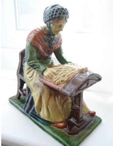 http://tinyurl.com/4hn4zpl Flemish Pottery figure The Lacemaker c1910 Belguim