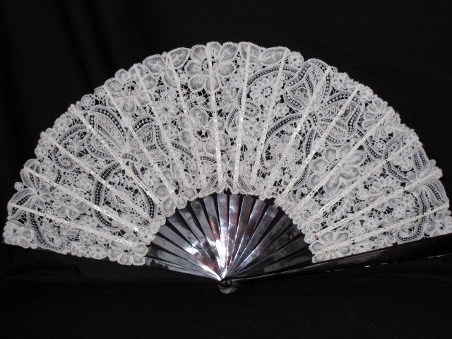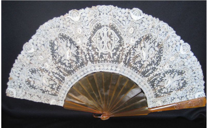 http://tinyurl.com/6brq6jh ANTIQUE LACE FANTASTIC POINT DE GAZE LACE FAN MONOG E