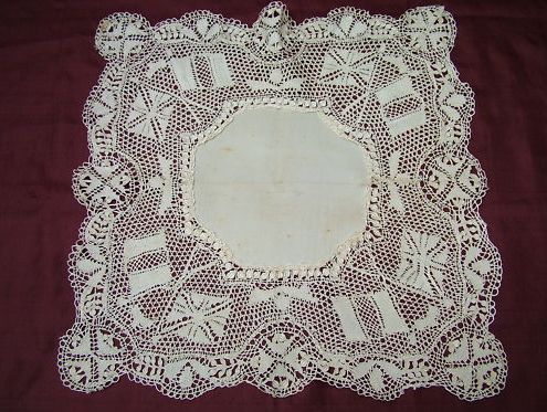 Comments: Very pretty Honiton handkerchief, some stains to the cloth, but the lace looks in very good condition.