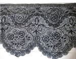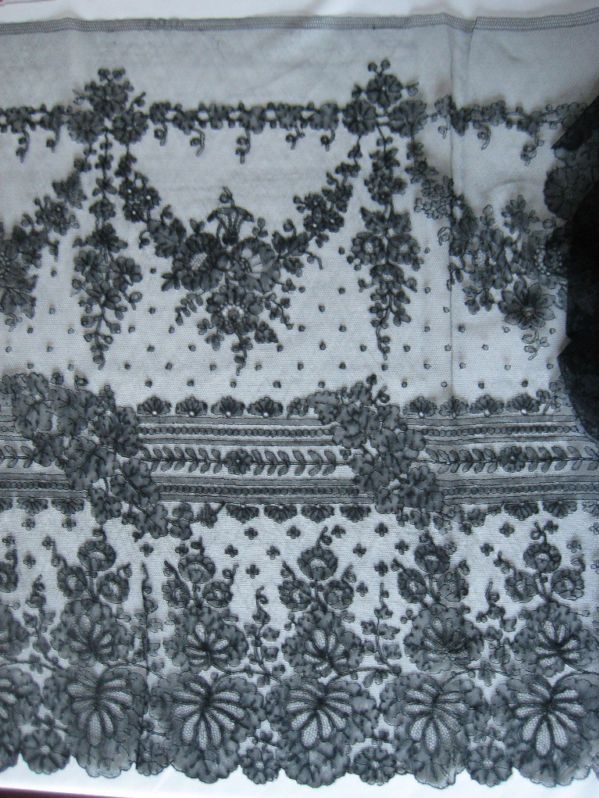 Comments: Good wide black silk Maltese lace border. Note the guipure designs of flowers and other non-Maltese cross elements. A sign of a superior piece.