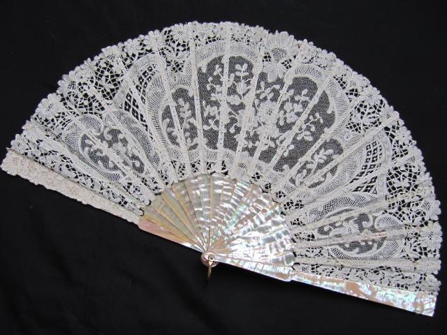 http://tinyurl.com/4n2fpdq BRUSSELS BOBBIN LACE FAN WITH MOTHER OF PEARL STICKS