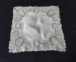 Comments: Belgian needlelace handkerchief, no raised work, not much in the way of fillings. Condition OK, few small holes. But the design works.