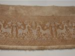 Comments: Interesting piece of Buratto, I don’t know how old. Some colored threads, with main work cream against a brown weave. Mounting fabric looks really dirty. But overall good condition, could clean up nicely. The buratto piece itself looks cut on the right end, with an additional fringe added later.