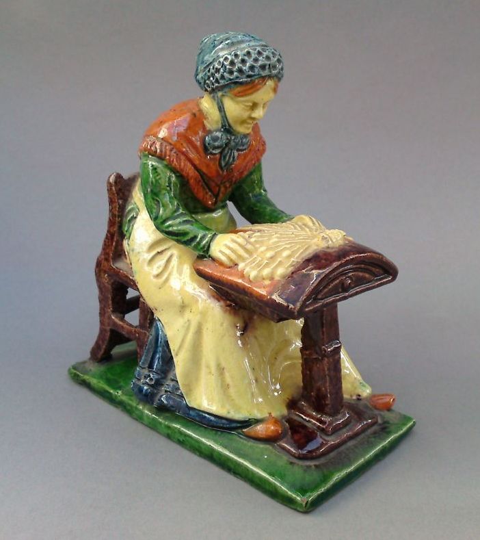 http://tinyurl.com/4ggyhlh Vintage Majolica Figure – Lady Lace Making. / Studio