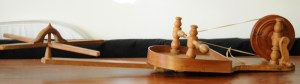 As a response to a comment on this piece I’m attaching some photos of very similar Haute Loire region bobbinwinders in my collection. Note the extending arm for the windmill in the example on the left – the windmill itself has been taken off in order to show its supporting peg. A second example with the arm fully extended and windmill attached is shown on the right.