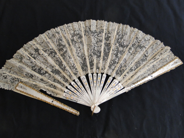 http://tinyurl.com/4bveblx CIRCA 1860, ORNATE BRUSSELS POINT DE GAZE LACE FAN