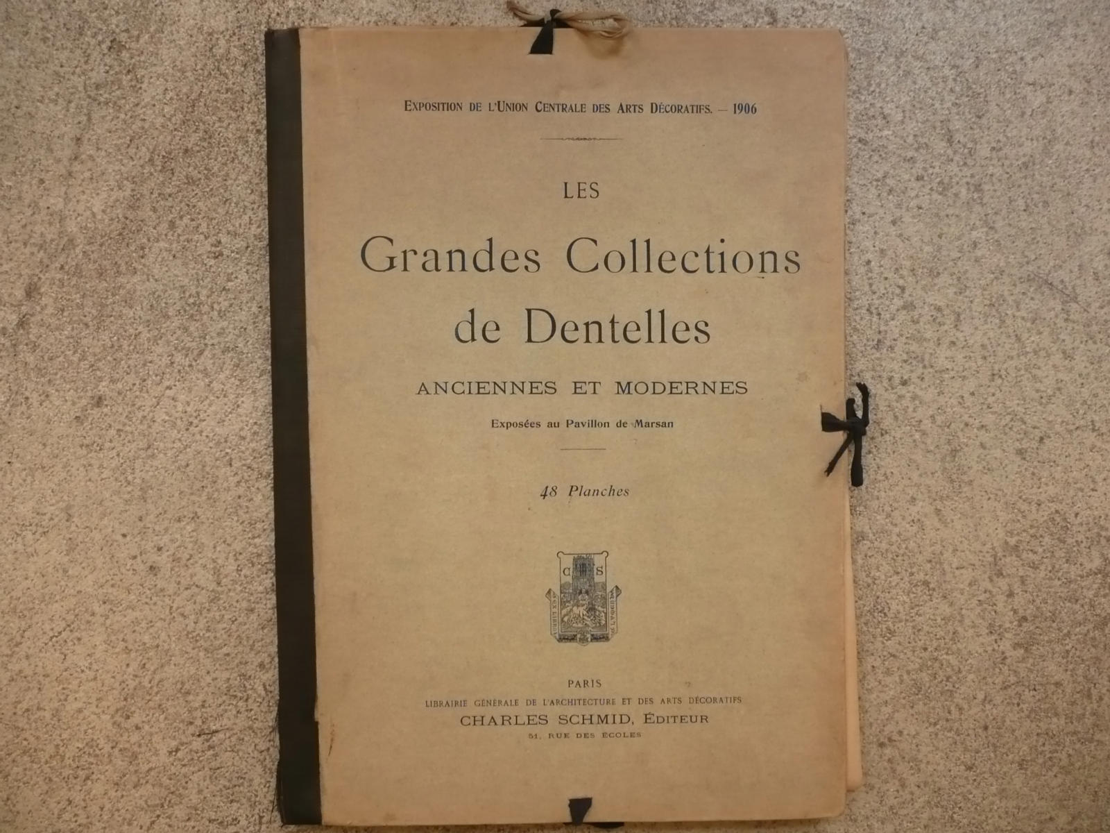 Comments: This work, produced in 1906 as an exhibition catalog, was published by Charles Schmid, Librairie Générale de l’Architecture et des Arts Décoratifs. Not to be confused with A. Calavas, Librairie des Arts Décoratifs, also from Paris, who was a great publisher of similar works. It is one of a number of large portfolios of lace photographs (in excess of 20 different works) produced around this time. I’ll have to do a LaceNews post on these in the near future. Plates are browned, but reasonable. Looks like two of them are duplicates, which isn’t good. But this is quite a rare work.