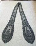 Comments: Handmade Chantilly just pops out at you – you can never mistake it for the machine stuff. A sweet lappet set, even a little bit of shading on the inside edges. Looks in very good shape.