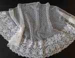 Comments: Good narrow handkerchief border of 20th century Binche. There have been a number of books written on this kind of lace recently, and a surprising number of proficient lacemakers. This type of lace can be traced back to early 17th century Belgium. This edge isn’t as fantastic as many I’ve seen, but it’s a good example of the non-figural type. Could have been made at any time in the 20th century. Or later.