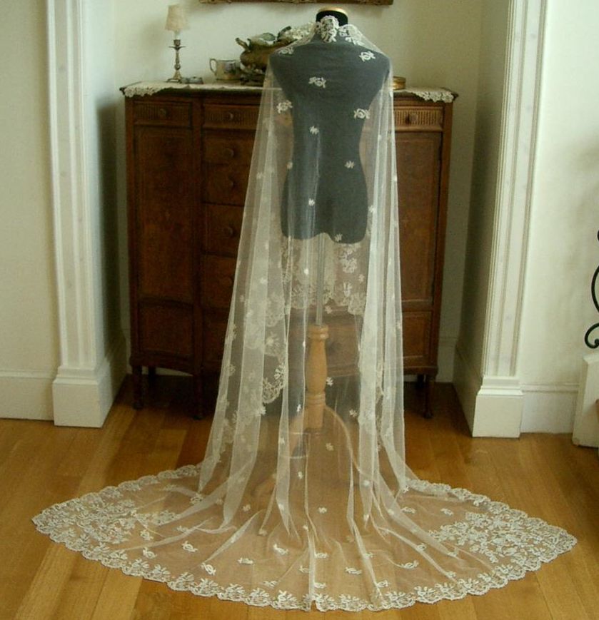 http://tinyurl.com/3dhv42g HM Antique Vtg HONITON NET LACE Wedding Veil Shawl Wrap