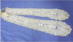 Comments: Good crochet collar, I think it’s Orvietto. It has the combination of small random bride ground and a larger mesh in interior spaces, along with well worked motifs. Interesting sort of Art Noveau design. Seller says it’s a little dusty, but no damage or spots. A very interesting piece.