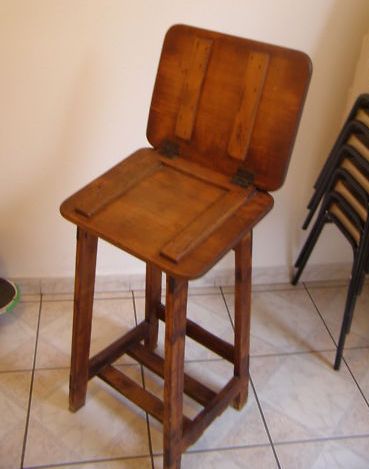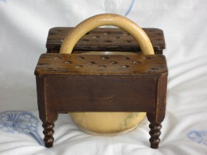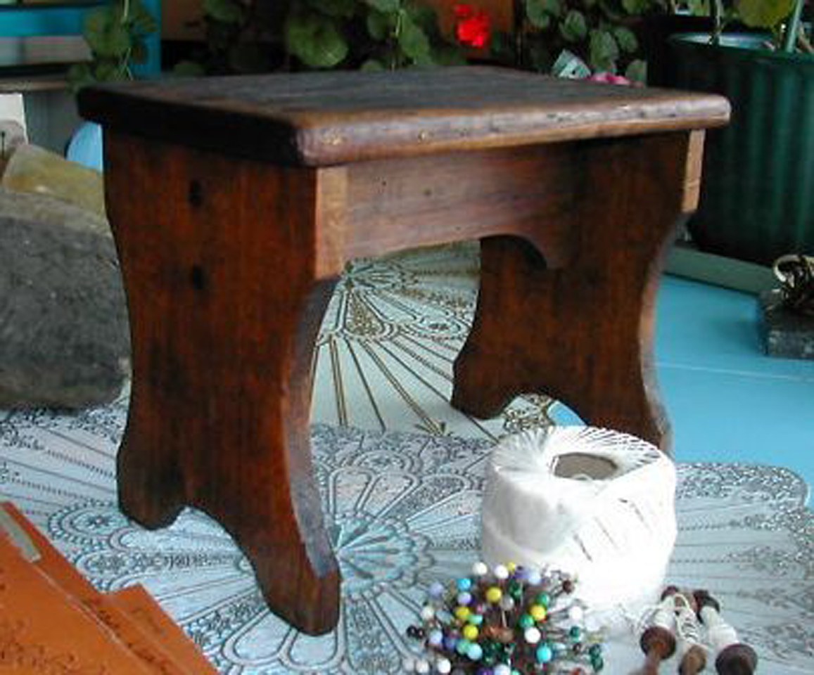 Continuing with my series on objects that bear the lacemaking name but may or may not be associated with the art, I’d like to take a look at furniture. The lacemaker needs a place to sit, and something to warm and/or support her feet. She needs storage space – boxes for bobbins, chests for her lace. In deciding whether or not to list an object in the ‘furniture’ category, I put a lot of weight on alternative uses. For example, a German klöppelstand supports the feet as well as the pillow, but no one would normally think it had another use. Well, OK, maybe some people think they are plant stands, but the majority of opinion is on the lacemaker’s side. Not so with chairs, stools, chests, and a large variety of boxes.