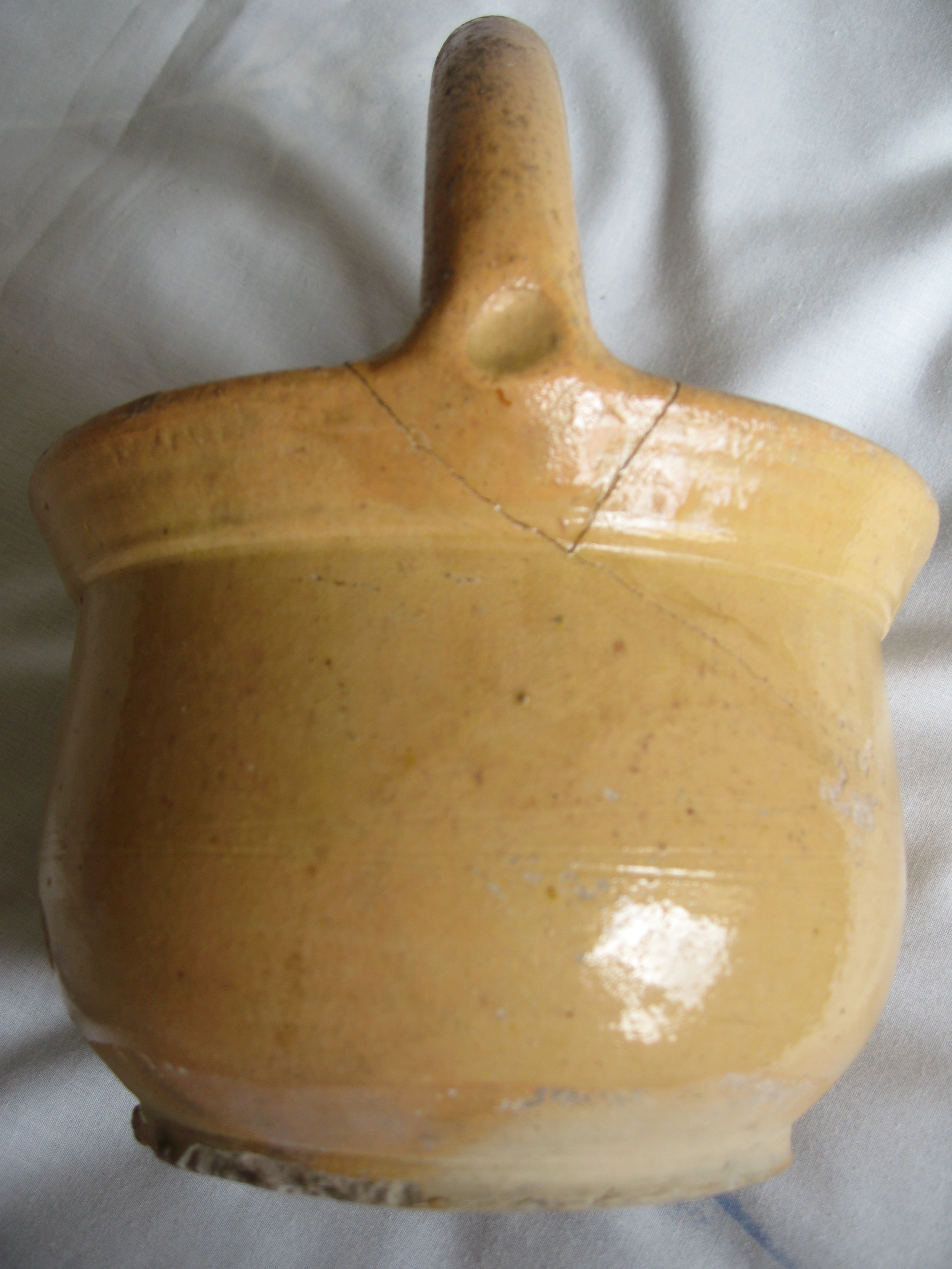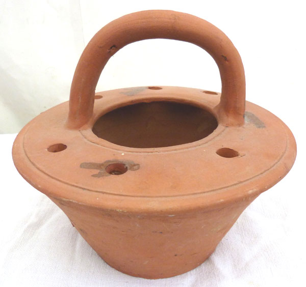 Bottom: Terra Cotta footwarmer labled as a “chaufferette de dentelliere”. If true, this is an atypical example in France, but might have some relationship to the dickey pot discussed below.