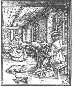 Figure 10 shows the earliest representation of bobbinlacemakers that we have – from the Nüw Modelbüch printed in Zurich in 1561. The foreground lacemaker is sitting on a stool, and the use of a stand would make a footstool unnecessary. But what is that low stool in the lower left corner of the picture? Why include it at all? It is a fascinating portrait.