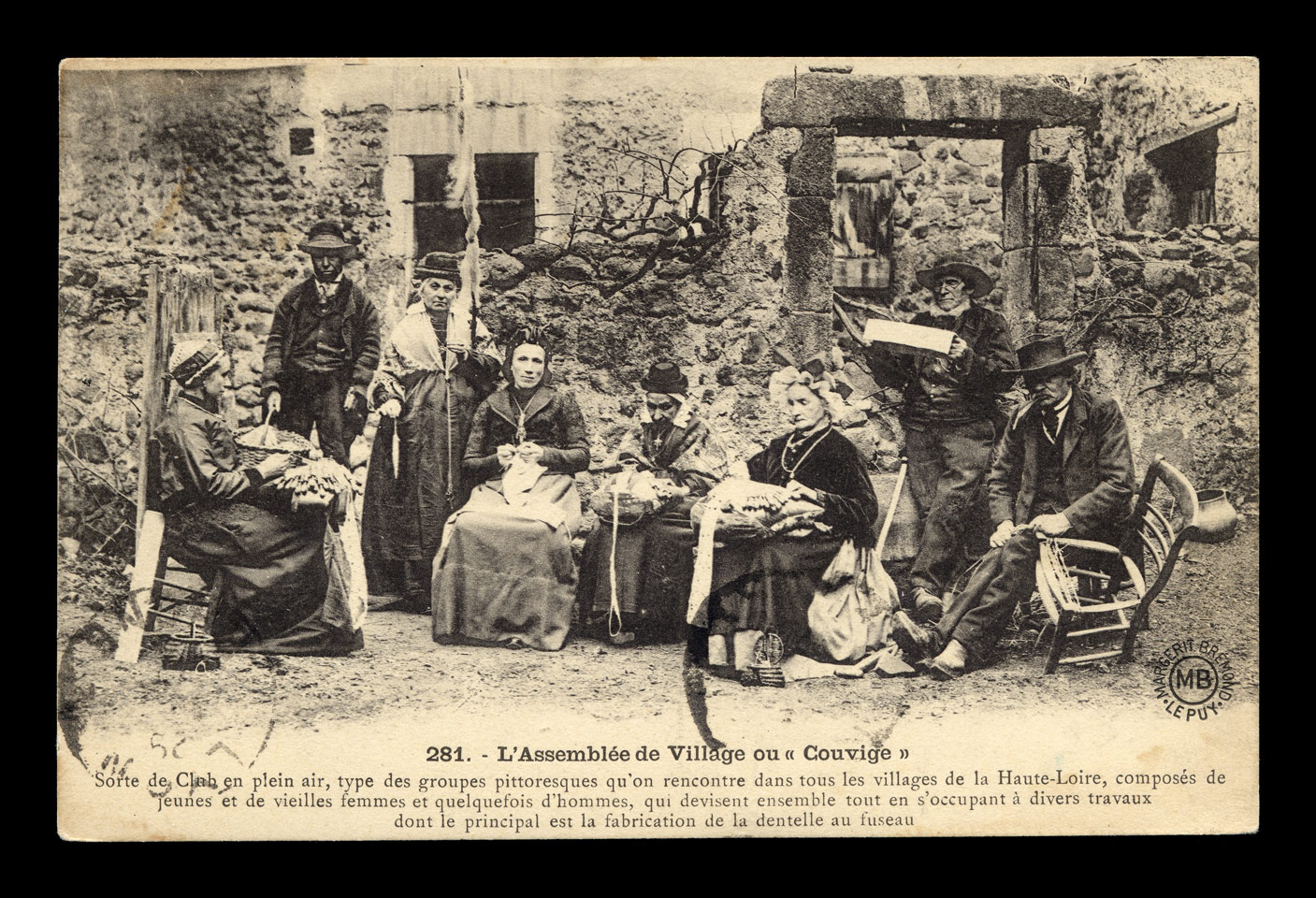 Right: Footstools in use are shown in this postcard image from Retournac.