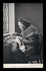 Figure 3. Three postcards hinting at the form of lacemaker’s chairs. I only wish that we could ask the man caning the chair what the lacemakers of his village preferred as comfortable working seating. Is he working from a standard lacemaker’s template? Or is this general purpose seating.