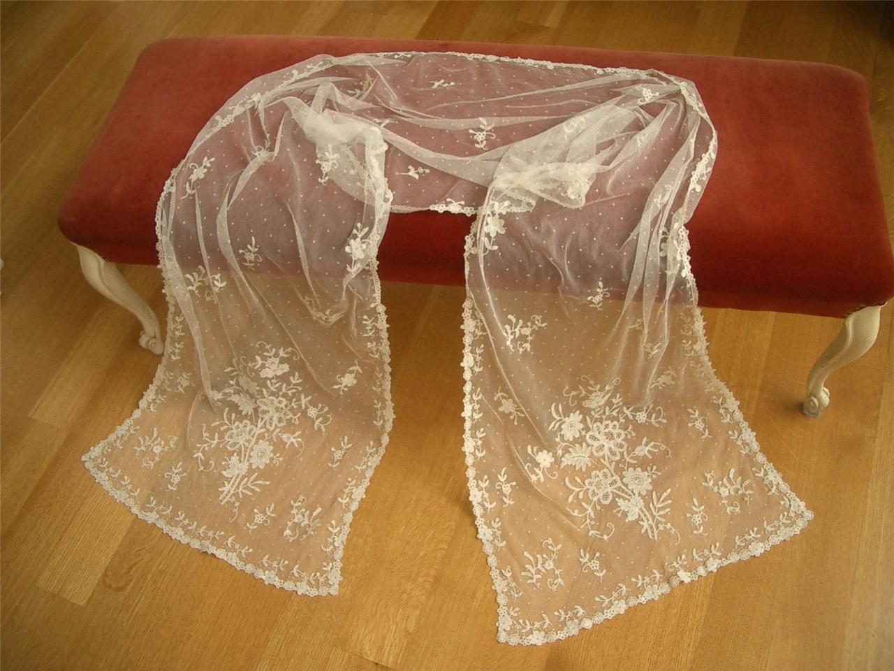 http://tinyurl.com/3vdlhfv HM Antique Vtg BRUSSELS LACE Wedding Veil Shawl Stole