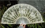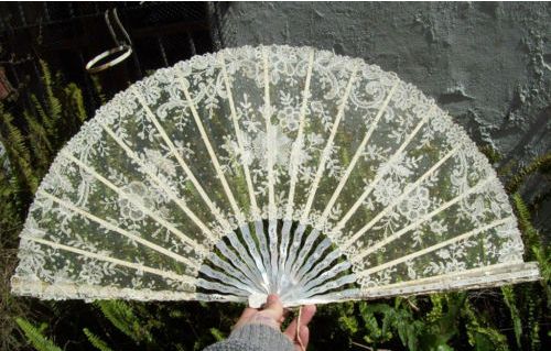 http://tinyurl.com/43datd3 BIG ANTIQUE BRUSSELS BOBBIN LACE HAND FAN MOP ABANICO