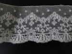 Comments: A good later 19th century Mechlin border. Note the areas of halfstitch shading in the flower petals. This symmetric design works well in ruffles. The condition appears very good, I can’t see any issues in the photos.