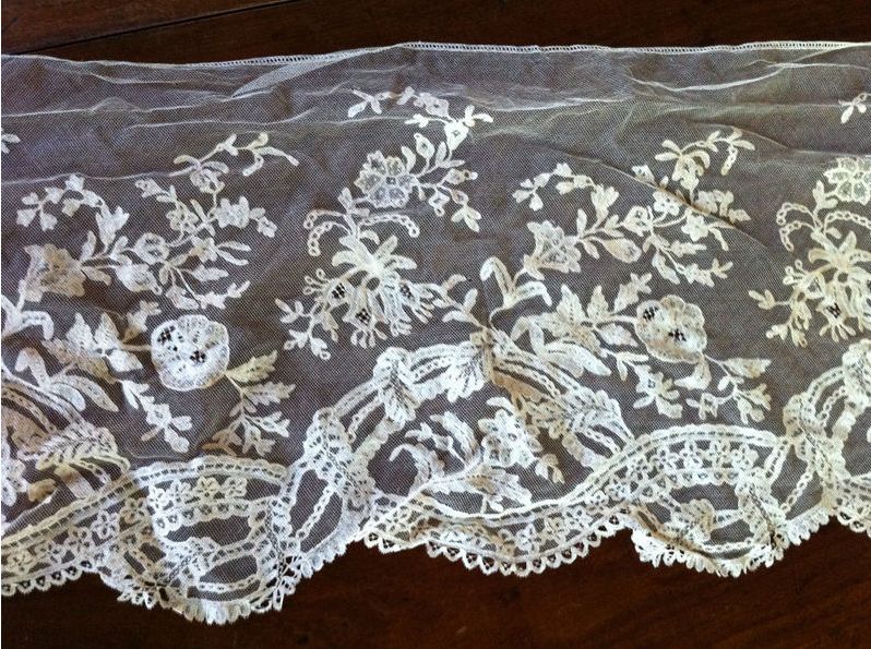 http://tinyurl.com/4y8cm2a ANTIQUE LACE- FINE BRUSSELS LACE W/MONOGRAM, FLOWERS