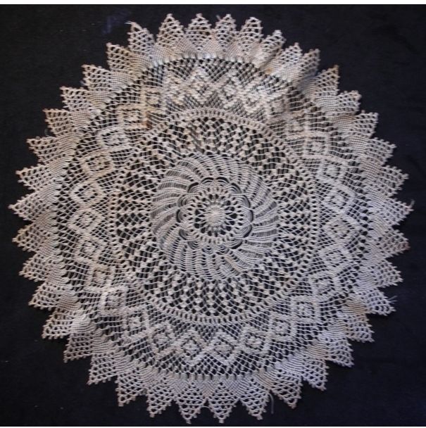 Comments: A well-designed Armenian knotted lace doily – two available. A few loose threads along the outside edge, probably tie ends of knots. Very good condition otherwise.