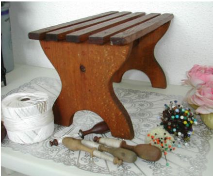 Comments: Lacemakers footstool from Canton d’Arlanc, a small village in Southeast Puy de Dôme. It has an unusual slatted top, and appears in very good condition. Seller states that the wood is beech, at least that’s how I think the phrase bois de hêtre is translated. Excellent seller, I’ve gotten a number of equipment pieces from him.