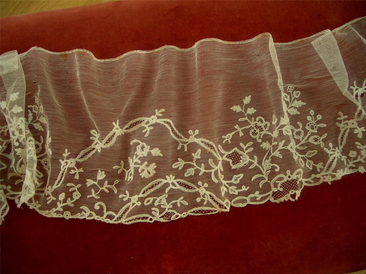 http://tinyurl.com/3p8gx5e WIDE Hand Made Antique Vtg BRUSSELS APPLIQUE LACE FLOUNCE *78in