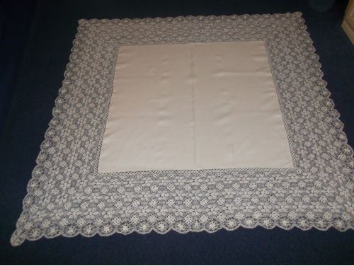 http://tinyurl.com/3hertnm STUNNING CREAM VINTAGE LINEN TABLECLOTH WITH 9″ MALTESE LACE BORDER