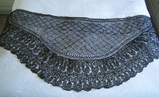 http://tinyurl.com/3pr5fg4 VINTAGE ANTIQUE LARGE BLACK BEDFORDSHIRE LACE SHAWL