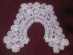 Comments: A collar that I would put more on the Bruges Bloemerk side than formal Duchesse. There is a little raised work, but no needlelace fillings that I can see. Condition is very good. Note, photos look taken from the back side.