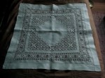 Comments: These Mexican drawnworks are badly neglected by collectors, yet the work is very beautiful. I think they suffer from ‘household linens’ stigma that pure lace collectors tend to avoid. But pieces like this are too large for a handkerchief, and not usable as table linens – it’s more of a decorative piece. I’m collecting a lot of videos on the subject (many of which come from Mexico) for the November LaceNews Channel on Youtube update. This example is beautifully done – much of this work was imported into the US through one dealer in Texas in the early 20th century. Condition looks unused.