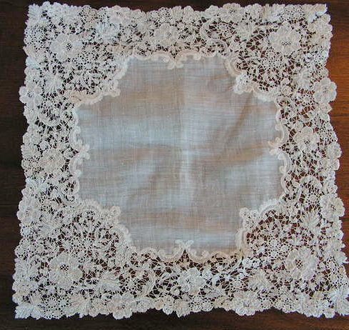 http://tinyurl.com/6slcb9p Antique Brussels Lace Floral Wedding Handkerchief/Hankie