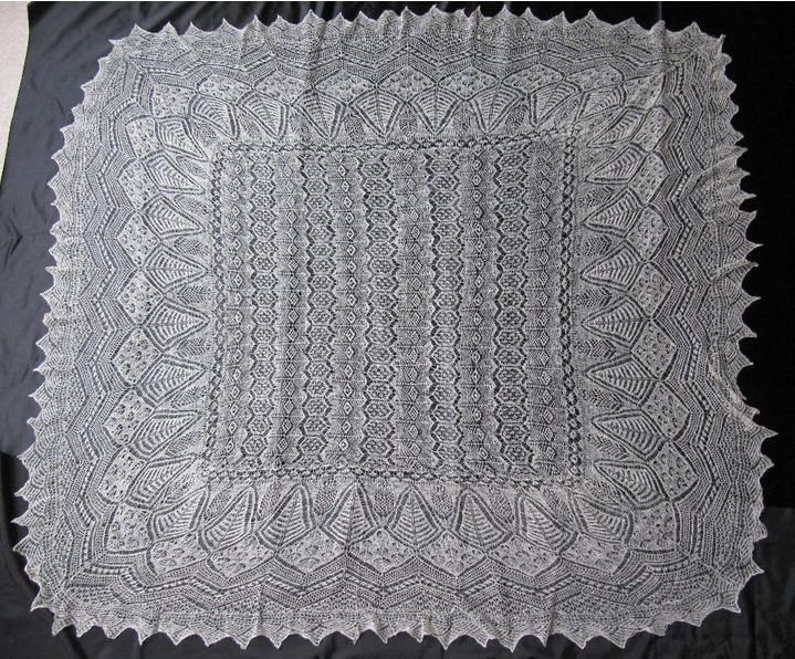Comments: A fine Shetland knitted shawl, total weight 2.8 ounces. The design is beautifully executed, quite varied and complex. I don’t see any condition problems which is even more remarkable.