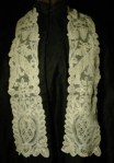 Comments: Not enough closeup photos to tell, but I think this has a needlelace ground. An unusual piece, the bobbinlace motifs have nice raised work but are a bit large. Needlelace has some good ring fillings and also a few sprigs in this curious band motif. I hesitate to call it Duchess – but I can’t quite place it. It’s almost like someone was trying to copy old Brabant work. Condition looks good, very minor defects.