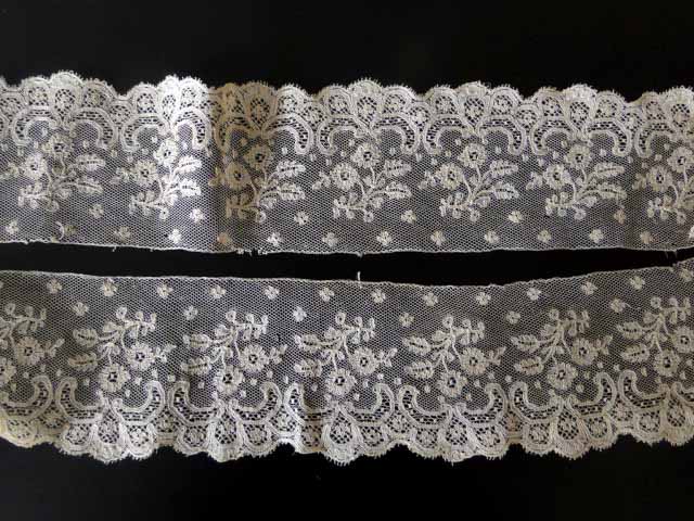 Comments: A Mechlin border with short repeat. Fine, dense technique, designed to be ruffled. A little rough on the foot edge but basically good condition.