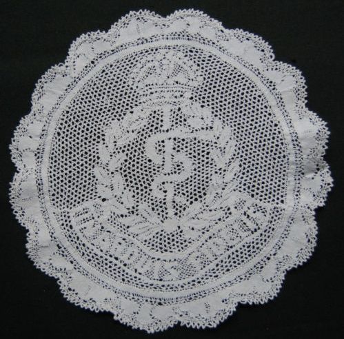 http://tinyurl.com/7bky2uy 6 Bucks lace doyleys des. with insignia of the Royal Army Medical Corps c1900