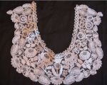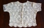 Comments: An Irish crochet shirt with lots of small detail. Mainly Rose of Sharon used as cloth, with raised buttons, and some nice leafwork and other raised work along the front seam. Condition looks very good, I don’t see any problems from the photos.