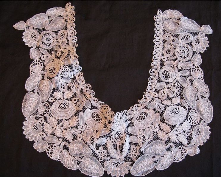 http://tinyurl.com/8ywnnb6 MAGNIFICENT MUSEUM QUALITY c1850 HONITON BOBBIN LACE COLAR~THISTLES~LEAFS~ROSES
