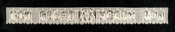 This exhibition examines the cult of St. Nicholas of Bari through iconography, paintings (by Titian) and sculpture. It particularly highlights the May 2009 gift by Mrs. Maria Vittoria Coen Del Vecchio of a 49 cm x 398 cm altar cloth made in Burano for the main altar of the Basilica of San Nicolo of Bari between 1930 and 1934. The piece shows 16 scenes of the life and miracles of St. Nicholas (the inspiration for Santa Claus). It was first exhibited at the 1934 Fiera del Levante, a trade fair held that is still held in September in Bari, Italy. Original cartoons for the lace were also donated and are on display.